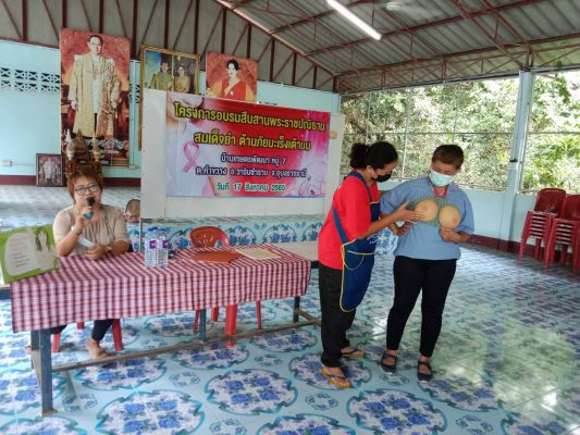 วันที่ 17 สิงหาคม 2565 เทศบาลตำบลคำขวาง ร่วมกับ โรงพยาบาลส่งเสริมสุขภาพตำบลคำขวาง จัดโครงการสืบสานพระราชปณิธานสมเด็จย่า ต้านมะเร็งเต้านม เพื่อให้ความรู้ประชาชนในเขตเทศบาลตำบลคำขวาง ให้สามารถดูแลและตรวจหามะเร็งเต้านมระยะแรกได้ด้วยตนเอง