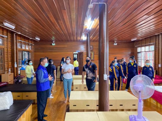 วันเสาร์ที่ 24 กรกฎาคม 2564 ดร.ณัฐณิชาช์ เพิ่มทองอินทร์ นายกเทศมนตรีตำบลคำขวาง นายสบา บัวสอน ประธานสภาเทศบาลตำบลคำขวาง สมาชิกสภาเทศบาลตำบลคำขวาง พนักงานเทศบาลตำบลคำขวาง ร่วมต้อนรับ นายสมชัย บูรณะ นายอำเภอวารินชำราบ นางสาวศิริวรรณ คูณมี ปลัดอำเภอ มาให้กำลังใจและกำกับดูแลการปฏิบัติงานของเจ้าหน้าที่จากหน่วยงานต่าง ๆ ที่ให้การสนับสนุนเร่งดำเนินการปรับปรุงศูนย์พักคอย เพิ่มทองอินทร์บริรักษ์ เพื่อรองรับผู้ติดเชื้อโควิค-19