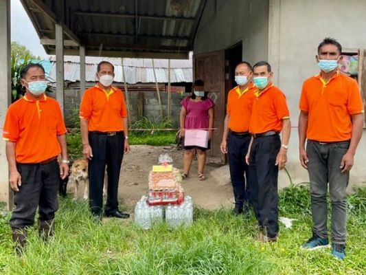 วันพฤหัสบดีที่ 9 กันยายน 2564 เวลา 14.00 น. ดร.ณัฐณิชาช์ เพิ่มทองอินทร์ นายกเทศมนตรีตำบลคำขวาง มอบหมาย นายหนูนาต ดำพะธิก รองนายกฯ นายสมาน พรมบุตร รองนายกฯ นายประสงค์ เพชรชารี เลขานุการนายกฯ มอบถุงยังชีพ แก่ผู้กักตัวตามมาตราการเฝ้าระวัง ป้องกัน และควบคุมมิให้มีการแพร่ระบาดของโรคติดเชื้อไวรัสโคโรนา 2019 จำนวน 5 ราย ในพื้นที่ตำบลคำขวาง อำเภอวารินชำราบ จังหวัดอุบลราชธานี