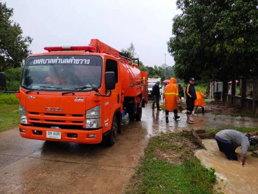 วันเสาร์ที่ 16 ตุลาคม 2564 เวลา 10.00 น. ดร.ณัฐณิชาช์ เพิ่มทองอินทร์ นายกเทศมนตรีตำบลคำขวาง นายหนูนาต ดำพะธิก รองนายกฯ นายวิชัย อุพันทา ปลัดเทศบาล นางสาวกิตติมา แก้วอุดม หัวหน้าสำนักปลัด นายนิเชษฐ์ อาจนาฝาย ผู้อำนวยการกองช่างและเจ้าหน้าที่เทศบาลตําบลคำขวาง ดำเนินการตรวจสอบและแก้ไขปัญหาน้ำท่วมขังในพื้นที่ คุ้มหนองบก หมู่ที่ 2 บ้านแค ตำบลคำขวาง เนื่องจากพายุฝนในคืนที่ผ่านมา จากการตรวจสอบพบว่ามีวัชพืชกีดขวาง ทำให้การระบายน้ำล่าช้า จึงได้ดำเนินการขุดลอกคลองและกำจัดวัชพืชเพื่อเปิดทางระบายน้ำออกจากพื้นที่