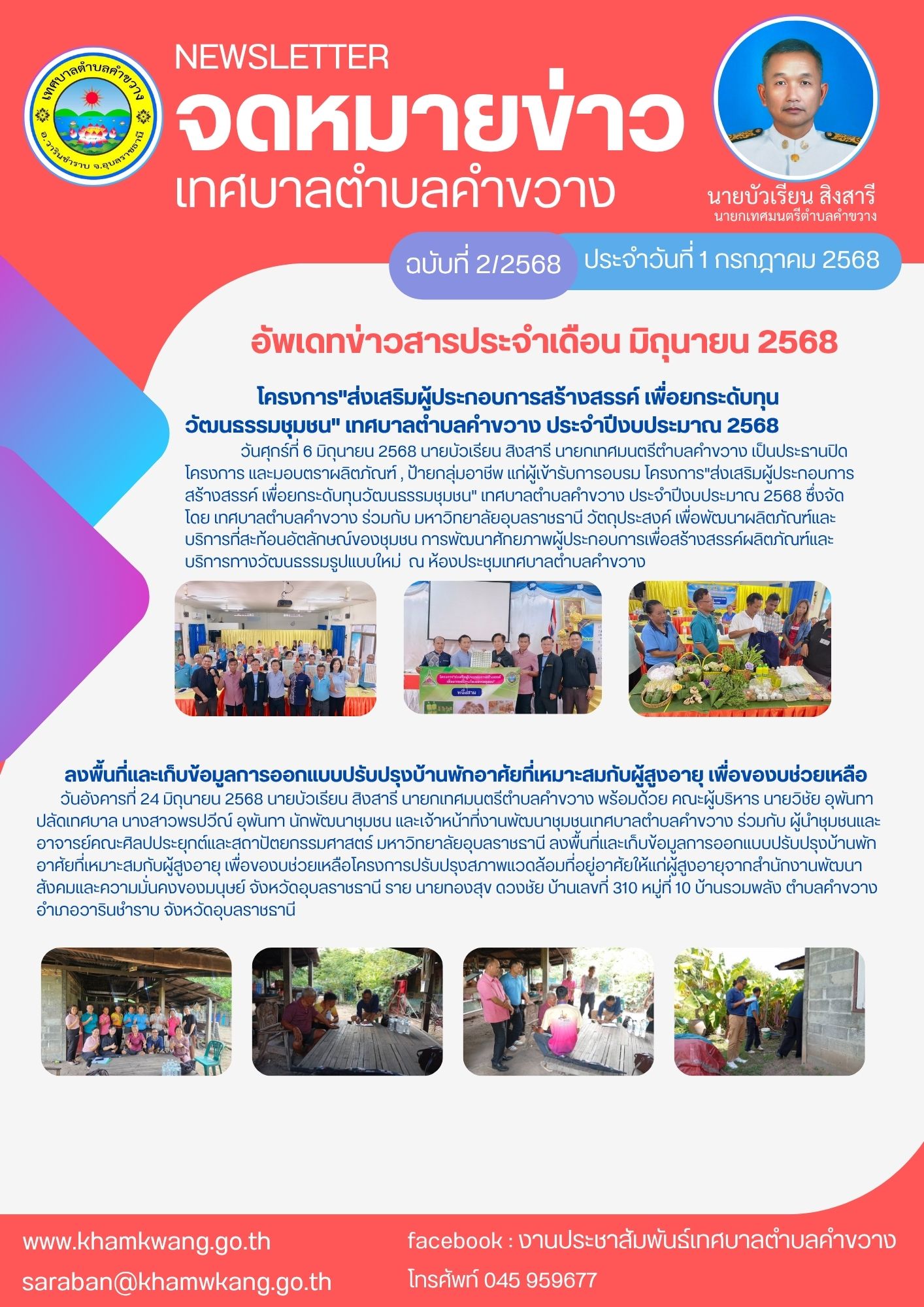 จดหมายข่าวเทศบาลตำบลคำขวาง ฉบับที่ 2/2568 ประจำเดือน มิถุนายน 2568