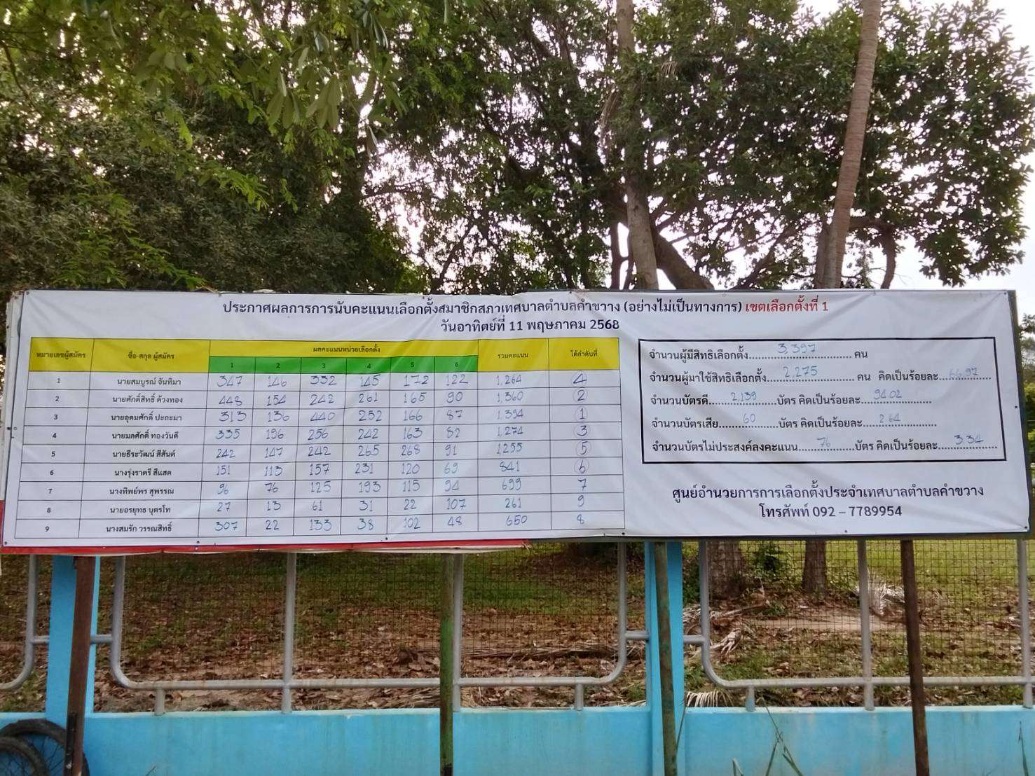 รายงานการใช้สิทธิ์เลือกตั้งสมาชิกสภาเทศบาลตำบลคำขวาง (อย่างไม่เป็นทางการ) และการนับคะแนนเลือกตั้งสมาชิกสภาเทศบาลตำบลคำขวาง ทั้ง 2 เขต