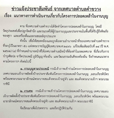 แนวทางการดำเนินงานเกี่ยวกับโครงการปลอดเหล้าในงานบุญ